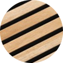Il fronte è in impiallacciatura di rovere (vero legno), il nucleo in MDF ad alta densità e il retro in feltro acustico. Le venature naturali e i toni caldi restituiscono un effetto legno autentico e un aspetto più premium ed esclusivo rispetto alle superfici solo in foil/lamina.
